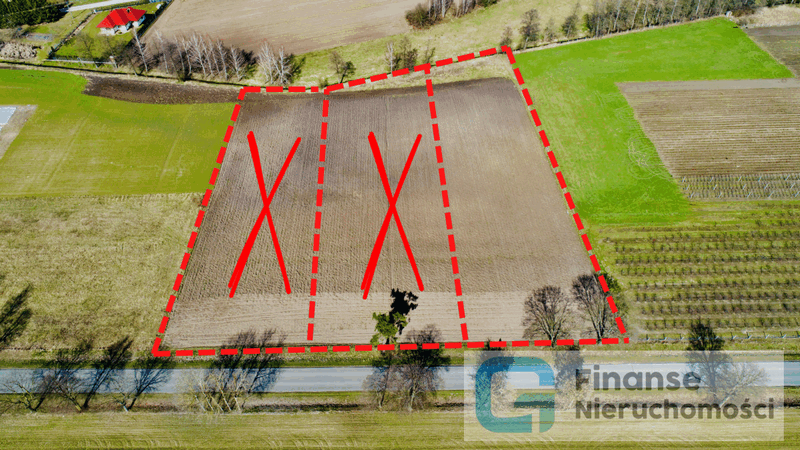 Parcela posiada powierzchnie 3824 m2 o orientacyjnych wymiarach 30,7 m x 125 m. Położona jest bezpośrednio przy asfaltowej drodze gminnej, w której znajdują się media takie jak prąd i wodociąg. Teren jest płaski i nie ogrodzony. W sąsiedztwie nowa zabudowa jednorodzinna.